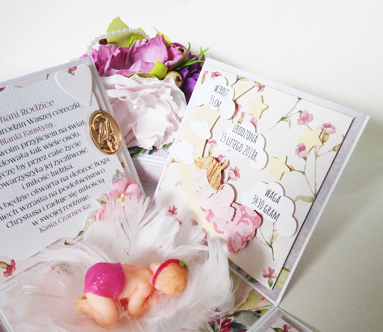 Delikatniutkie pudełko z okazji narodzin dziewczynki. Dzidziuś oczywiście własna robota :)